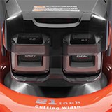 Der Rasenmäher bietet zwei Steckplätze für die 40V Akkus. Somit kann die Einsatzzeit einfach verlängert werden.