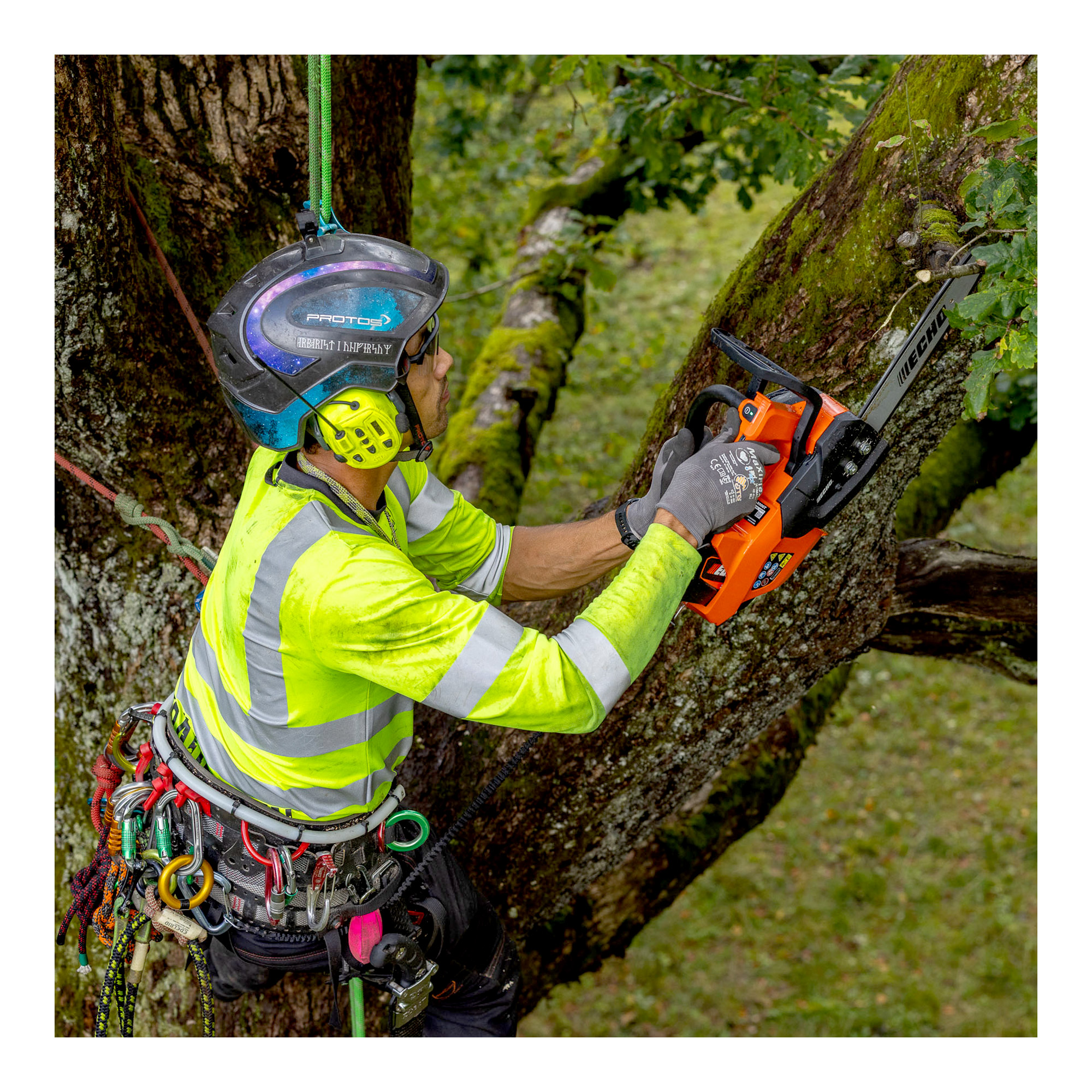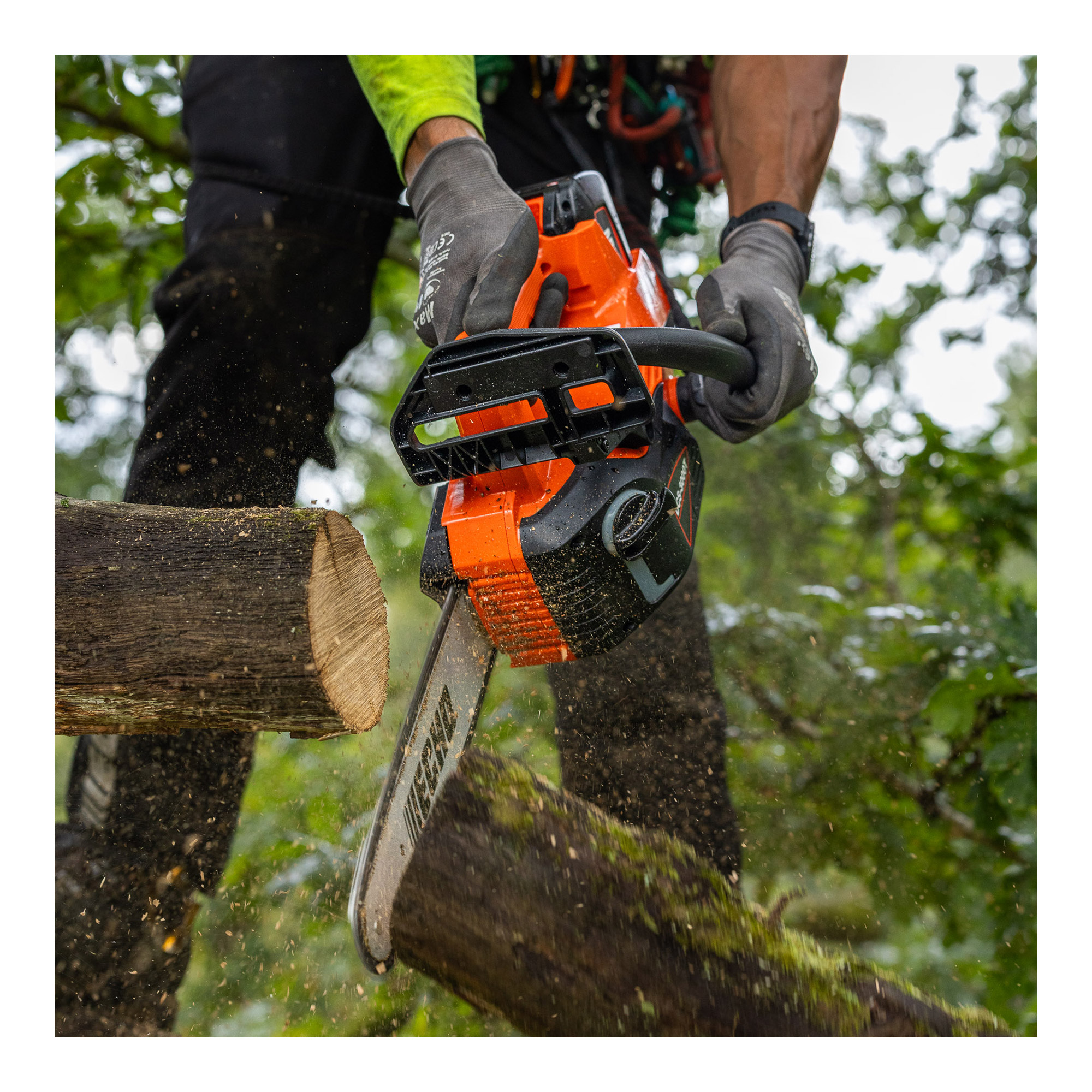 WICHTIGER HINWEIS: Diese professionelle Akku-Baumpflegesäge darf ausschließlich von sachkundigen Anwendern mit entsprechender Baumpflege-Ausbildung verwendet werden. Eine unsachgemäße Handhabung kann zu schweren Unfällen führen.