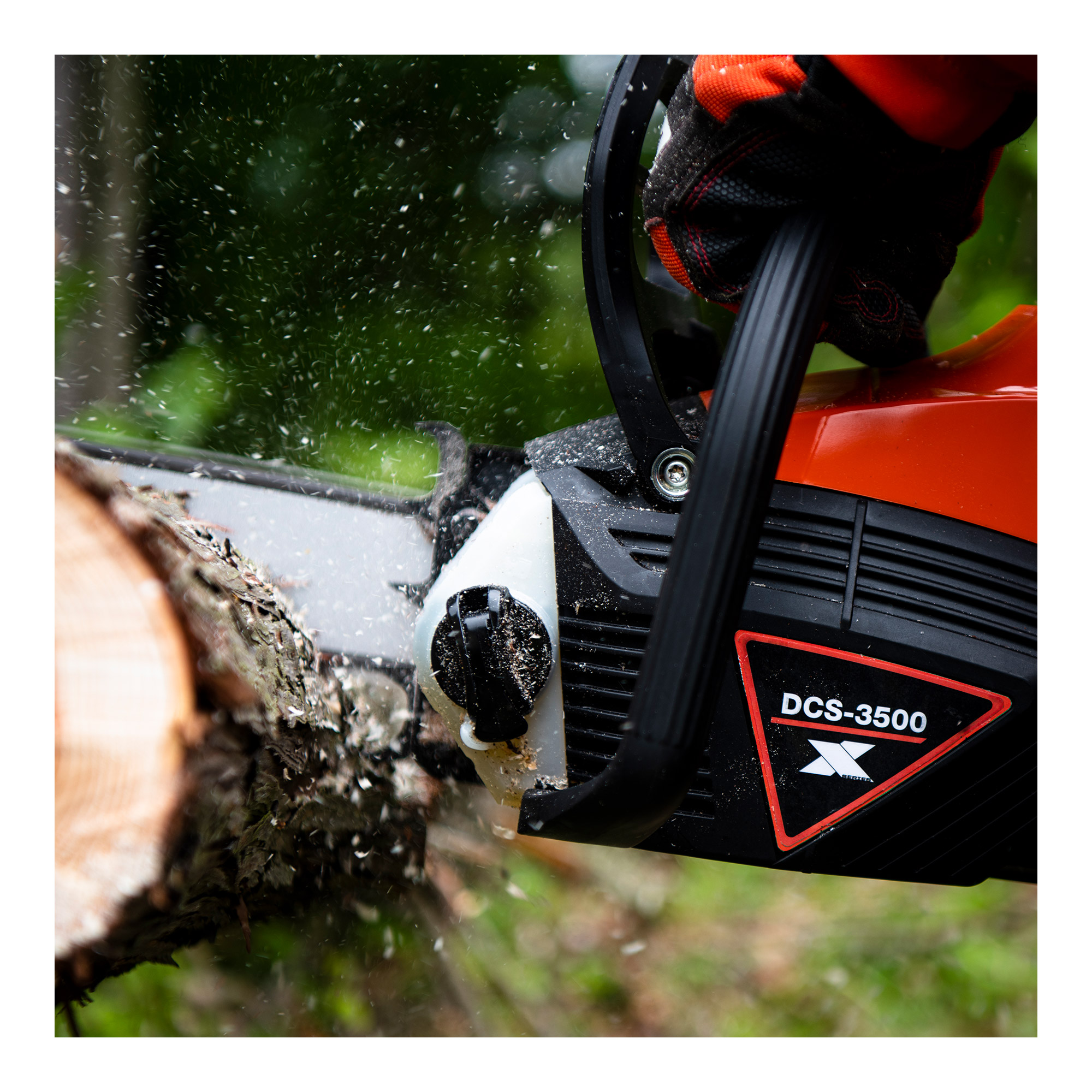 Akku-Kettensäge DCS-3500: Leistung vergleichbar einer 35-40 cm³ Benzin-Motorsäge - Die kraftvolle 56V Profi-Säge