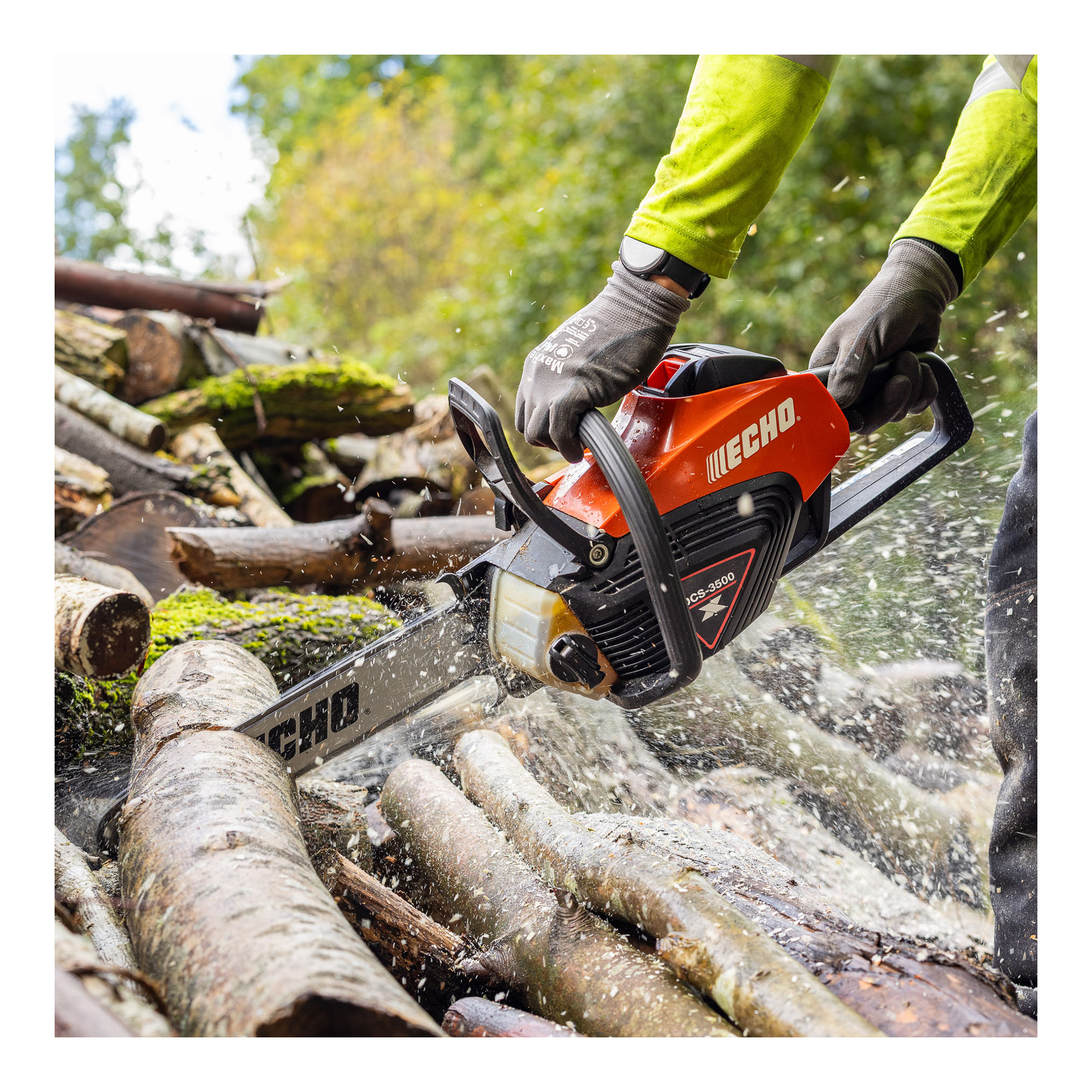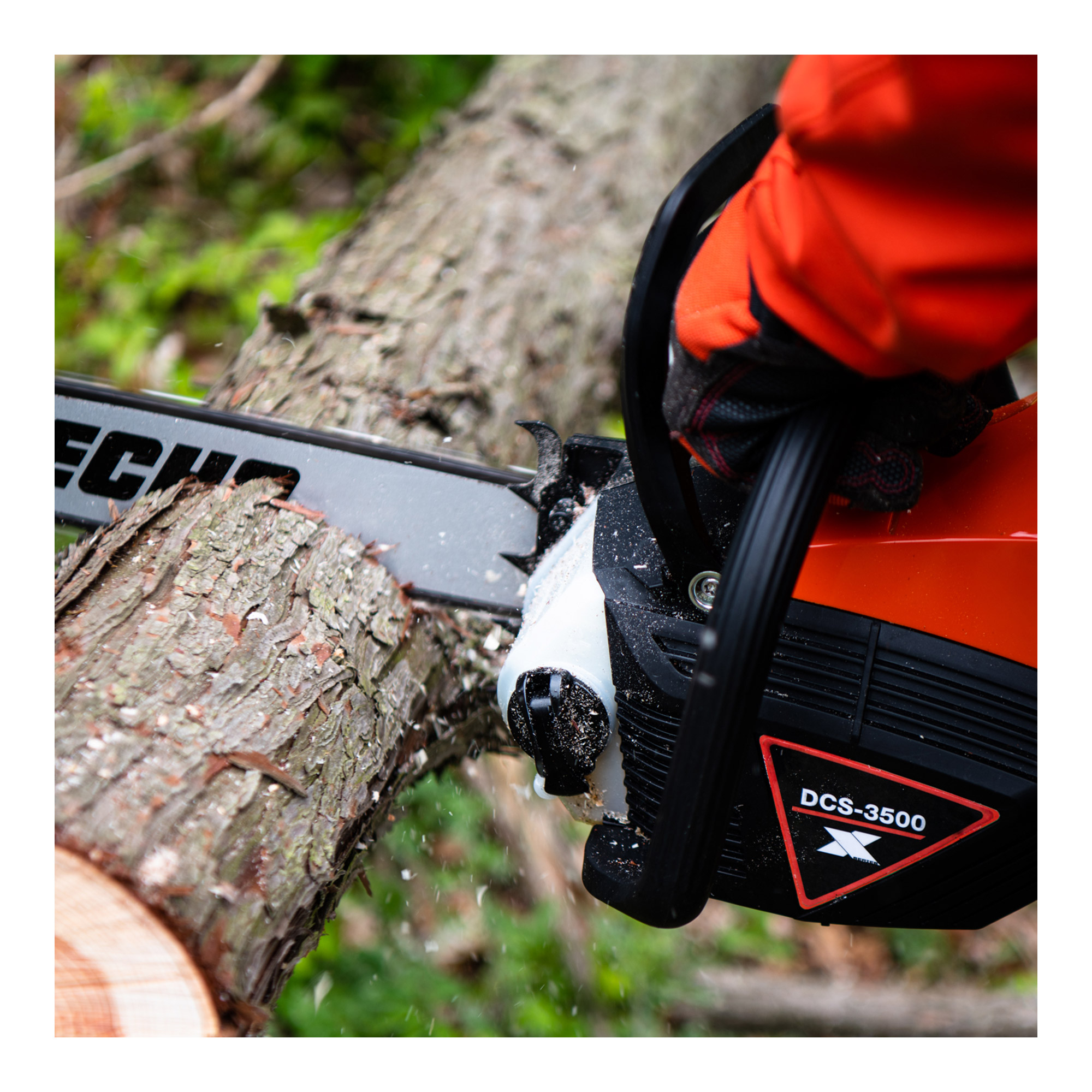 Die Akku-Motorsäge ECHO DCS-3500 wurde für Outdoor-Profis und anspruchsvolle Anwender gleichermaßen entwickelt. Als Teil der ECHO X-Serie und der 56V Professional Akku-Serie bietet der kraftvolle bürstenlose Motor eine Leistung vergleichbar einer 35-40 cm³ Benzinsäge und alle Features sind darauf ausgelegt, deine Produktivität zu steigern. Die DCS-3500 eignet sich für das Schneiden starker Äste oder zum Fällen kleinerer Bäume und ist für professionelle Anwender konzipiert, die eine kraftvolle, aber auch handliche Akku-Kettensäge für ihre Arbeit benötigen. Mit nur 2,9 kg Gewicht (ohne Akku, Führungsschiene und Kette) wurde auf möglichst niedriges Gewicht geachtet, damit du schnell, effektiv und ausdauernd arbeiten kannst. Die DCS-3500 verfügt über eine hohe Schnittleistung und durch den geräuscharmen bürstenlosen Motor kannst du Sägearbeiten auch in lärmsensiblen Bereichen wie in Wohngegenden, rund um Krankenhäuser oder in Parks durchführen.