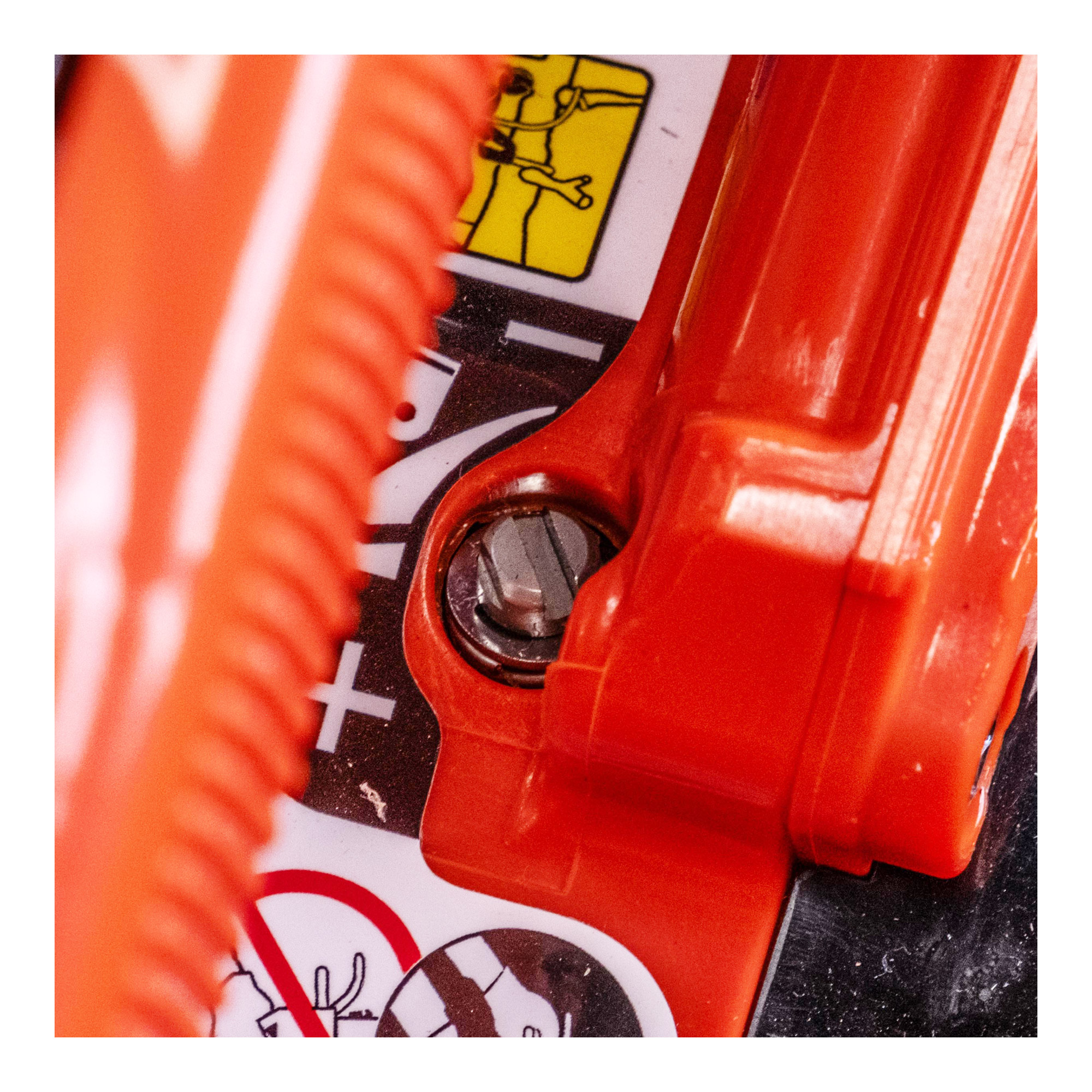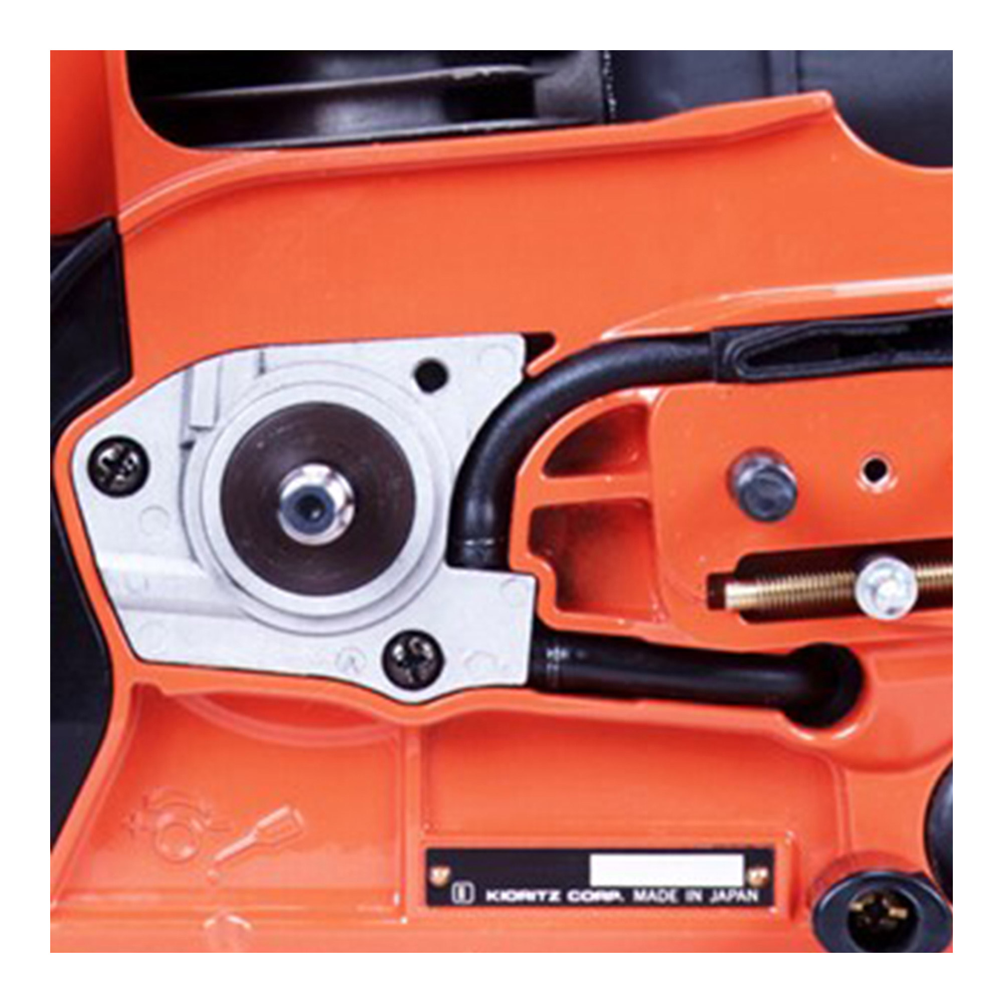 Die seitliche Kettenspannung mit Verlierungssicherungen für die Kettenraddeckelmutter ermöglicht schnelle Ketteneinstellungen, während die von oben zugängliche einstellbare Ölpumpe die Durchflussrate für alle Bedingungen anpasst. Der ECHO Flip-Tankdeckel sorgt für einfache Öffnung, auch mit Handschuhen. Die transparente Öltank mit 240 ml Kapazität und Luftexpansionskammer ermöglicht schnelle Füllstandskontrollen. Der Luftfilter verhindert das Eindringen von Schmutz und Staub in den Kühlkanal, die Elektronik und das Motorgehäuse und sorgt für weniger Wartung und längere Lebensdauer. Die breitere und glattere Kettenradschutz-Geometrie reduziert Spänestau, während der reduzierte Spalt zwischen Kettenrolle und Kettenradschutz versehentliche Kletterseilschäden verhindert. Die neu entwickelte größere Anschlagkralle ist serienmäßig und sorgt für bessere Kontrolle bei präzisen Schnitten.