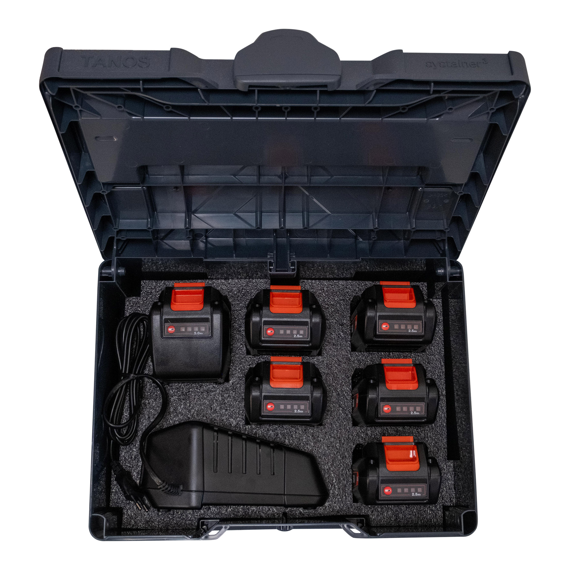 Du hast alles dabei, was du für einen produktiven Arbeitstag brauchst: Genügend Akkus für stundenlangen Betrieb plus das Ladegerät für die Pause zwischendurch.