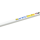Am Multifunktionsgriff bedienen Sie den Stoppschalter. Das Werkzeug wird von großdimensionierten Schutzvorrichtungen ausreichend abgedeckt. Benötigen Sie den Fadenkopf nach einem Schneidmesser, dann vergrößern Sie einfach werkzeuglos die Schutzvorrichtung.