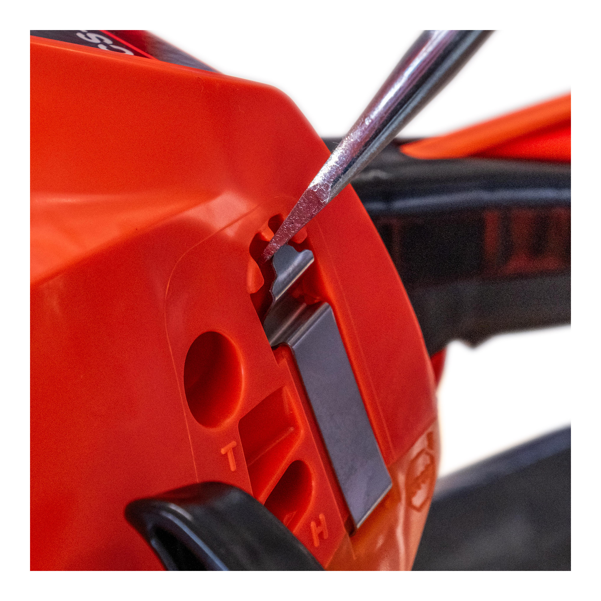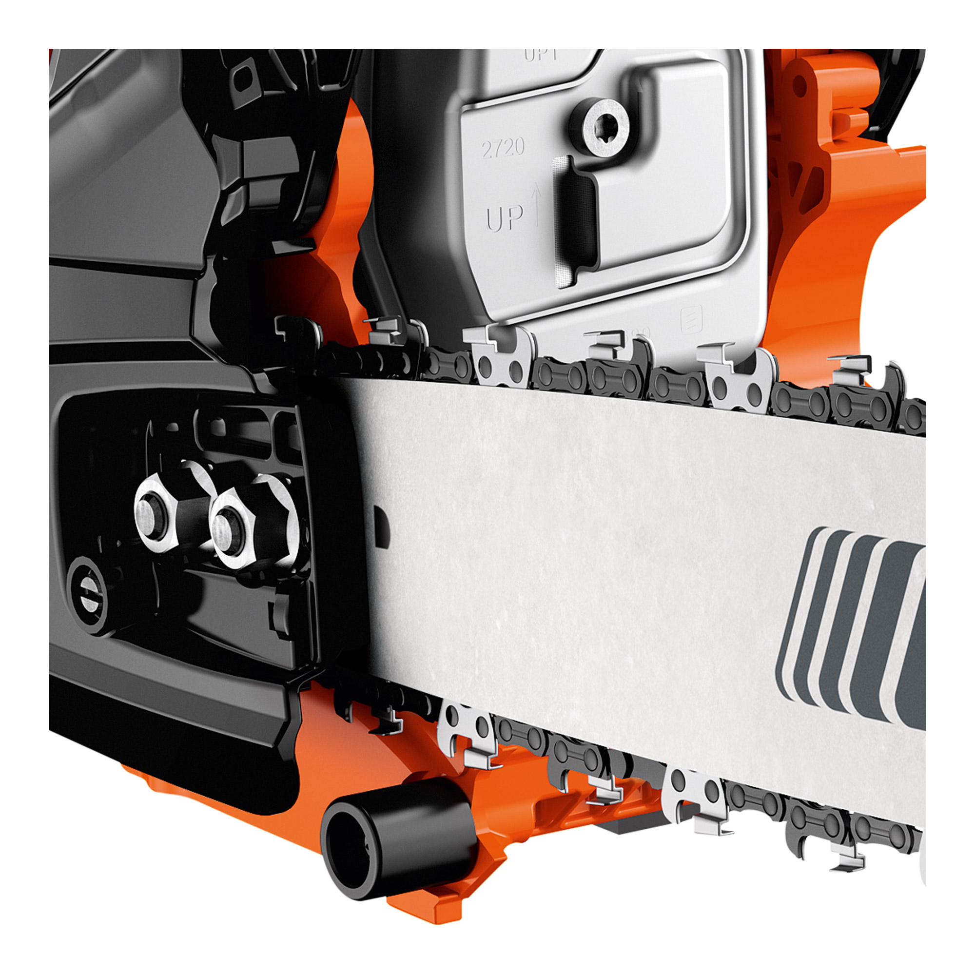 Die Wartung gestaltet sich dank intelligenter Konstruktion besonders komfortabel: Der seitliche Kettenspanner ermöglicht einfache Ketteneinstellungen auch während der Arbeit, während die neu entwickelten werkzeuglosen Öl- und Kraftstoffdeckel das Nachfüllen ohne Werkzeug ermöglichen. Der Luftfilterdeckel mit Clip-Verschlüssen ermöglicht einfachen Zugang zum Luftfilter und macht die Wartung unkompliziert. Das neu entwickelte Luftfiltersystem mit der G-Force Luftfilterreinigungstechnologie ist extrem effektiv darin, deine Maschine frei von Staub und Ablagerungen zu halten und reduziert den Wartungsaufwand erheblich. Das Anti-Vereisungssystem verhindert das Einfrieren des Vergasers in den kälteren Monaten.