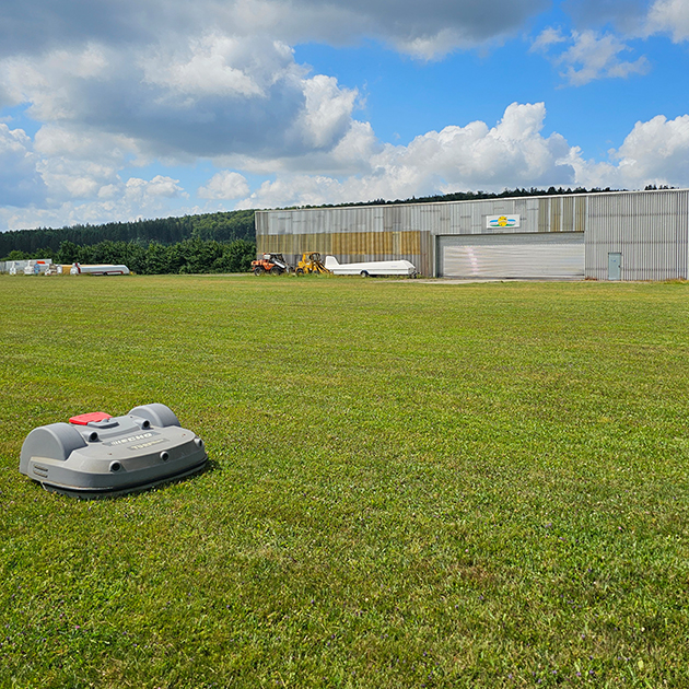 Während auf Modellflugplätzen und in der organisierten Luftfahrt bereits in der Vergangenheit Großflächenroboter eingesetzt wurden, ist der Einsatz auf Kleinflugplätzen wie Segelfluggeländen mit der Einführung des systematischen Mähens per GPS-RTK sinnvoll geworden.