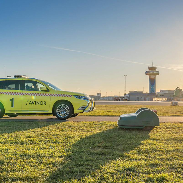 Grünflächen auf der Luftseite von allgemein öffentlichen Flughäfen zu mähen, ist eine komplexe Angelegenheit. Daher wurde für diesen Einsatz das Unternehmen ECHO Airport Services gegründet. Meist ist nicht die Grünflächenautomatisierung das Hauptziel, sondern die Verbesserung der Sicherheitslage durch Vogelschlagprävention. Speziell geschulte Mitarbeiter unterstützen europaweit den Einsatz von Großflächenrobotern auf Flughäfen..
