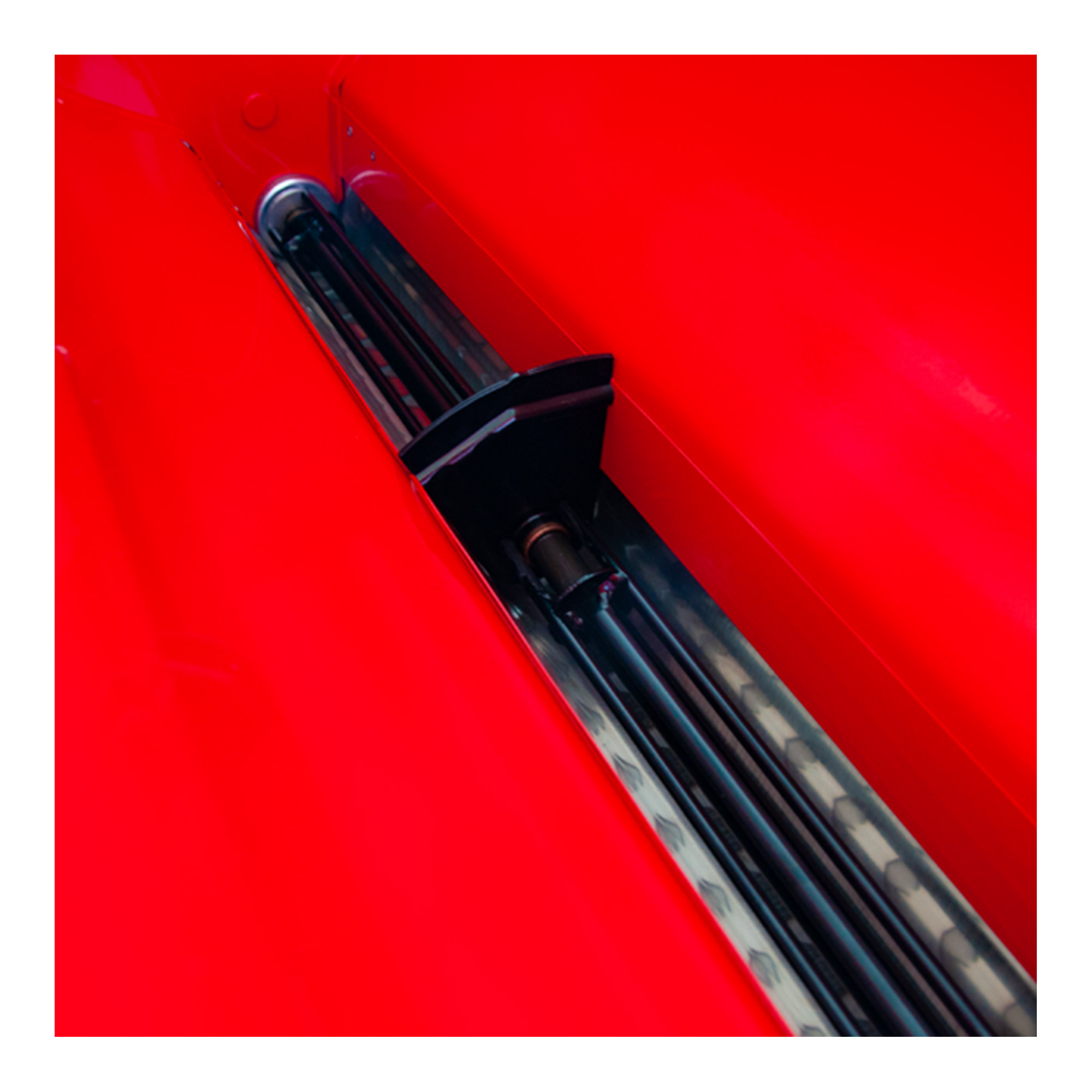 Die Konstruktion des Kastenstreuers basiert auf einem robusten Stahlbehälter mit pulverbeschichteter Oberfläche für maximale Langlebigkeit. Die hochwertige Pulverbeschichtung schützt vor Korrosion durch Düngemittel, Feuchtigkeit und aggressive Chemikalien – selbst bei intensivem professionellem Einsatz.