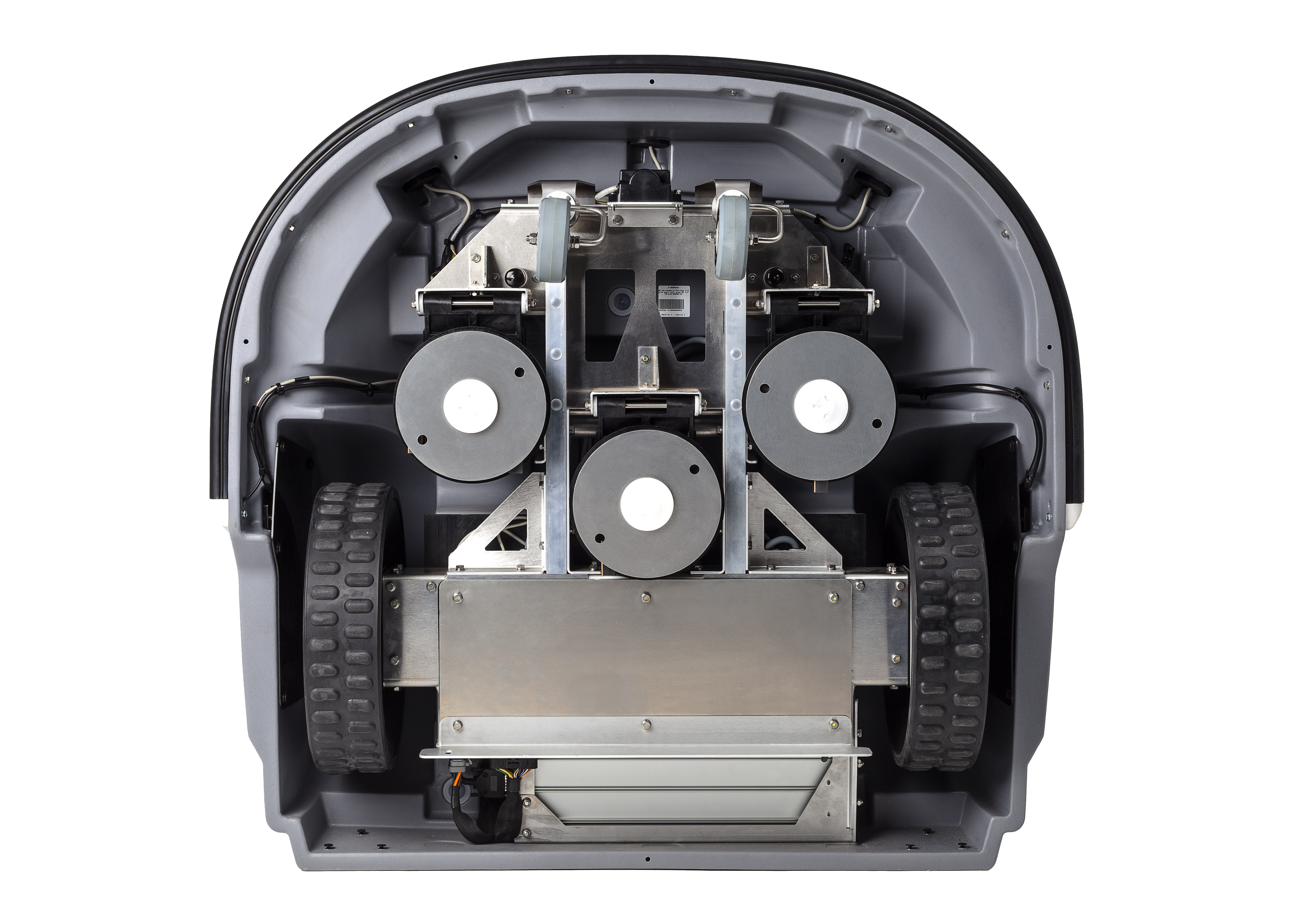 Unser TM-1050 besitzt ein robustes Gehäuse. Zur Reinigung lässt sich der Roboter im Gesamten aufstellen. Mit 3 pendelnden Messerköpfen sorgt der Mähroboter für ein hervorragend sauberes Schnittbild, da sich diese optimal an die Geländestruktur anpassen können. Im ersten Jahr ab Kaufdatum ist eine Premiumversicherung der Württembergischen kostenlos enthalten.