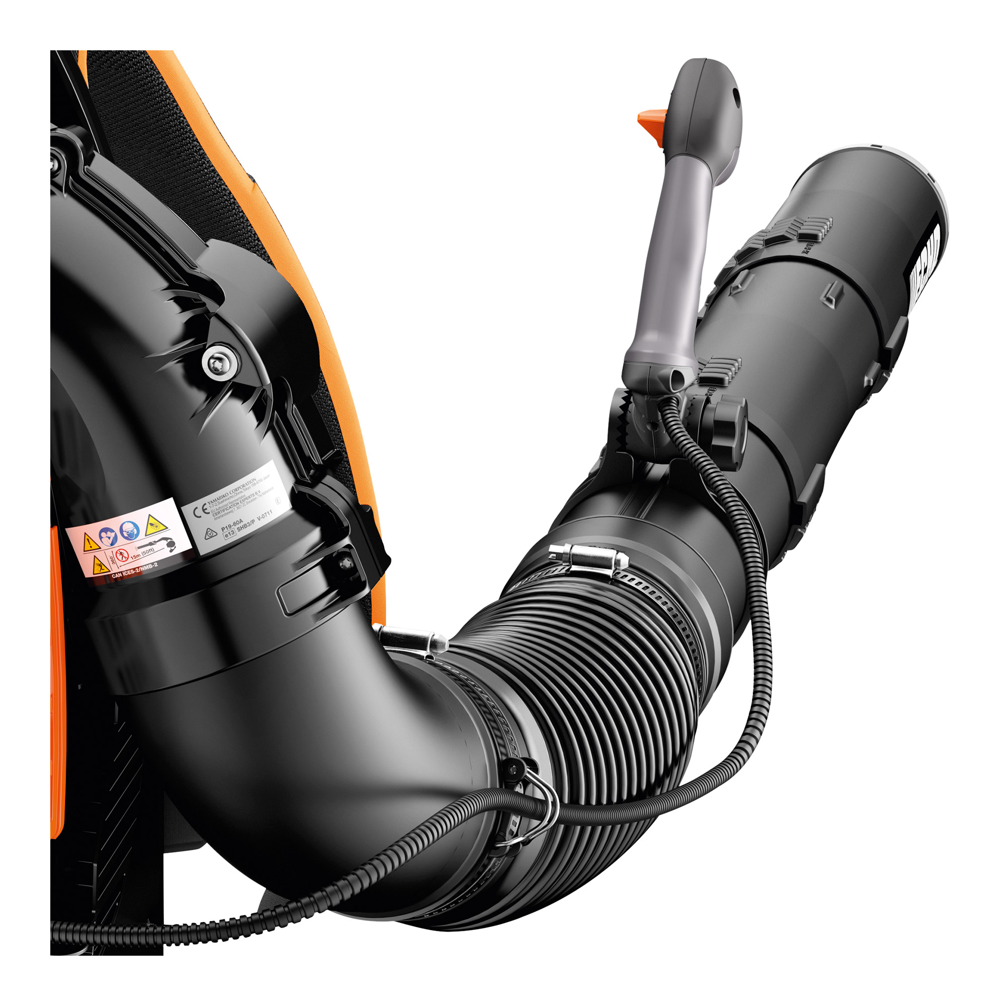 Der Einhand-Multifunktionsgriff am rückentragbaren Laubbläser ECHO PB-9010T positioniert alle Bedienelemente komfortabel im Griff. Der Gashebel mit Tempomatfunktion ermöglicht es dem Bediener, jede gewünschte Blasleistung stufenlos zu arretieren für konsistente Performance und reduzierte Ermüdung. Ein Stopp des rückentragbaren Benzin-Blasgeräts ist einfach per Knopfdruck möglich. Für großflächige, bodennahe Arbeiten empfiehlt es sich, die serienmäßige Runddüse am rückentragbaren Blasgerät zu verwenden. Ein Tragegriff dient für den Transport, und die Blasrohr-Aufbewahrungshaken ermöglichen kompakte Lagerung und bequemen Transport.